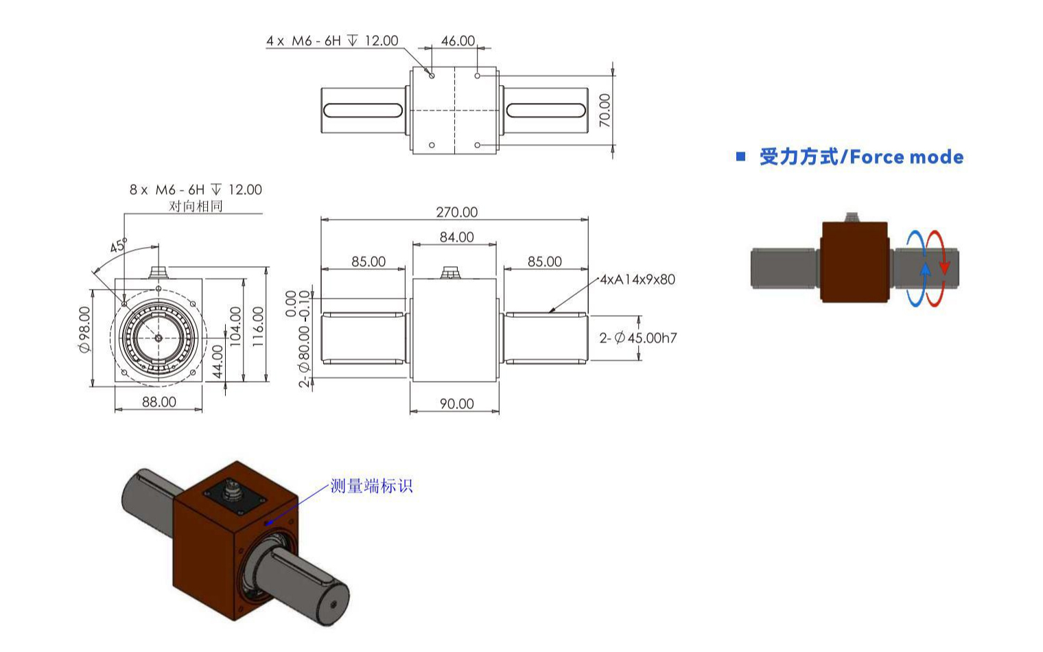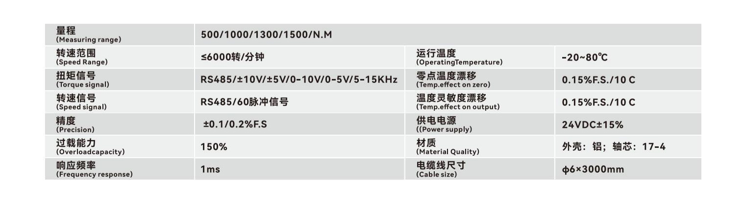 线圈电磁耦合,实现电源与测量信号无线传输,12芯一体注塑航空插头集扭矩信号频率信号,模拟量信号,转速信号,RS485数字信号整体输出。进口轴承,寿命较长,极限转速较高,耐负荷较高,摩擦力更小。一体成型外壳,更高的硬度,更小的变形,采用车规级芯片精度性能更高、稳定性更可靠。