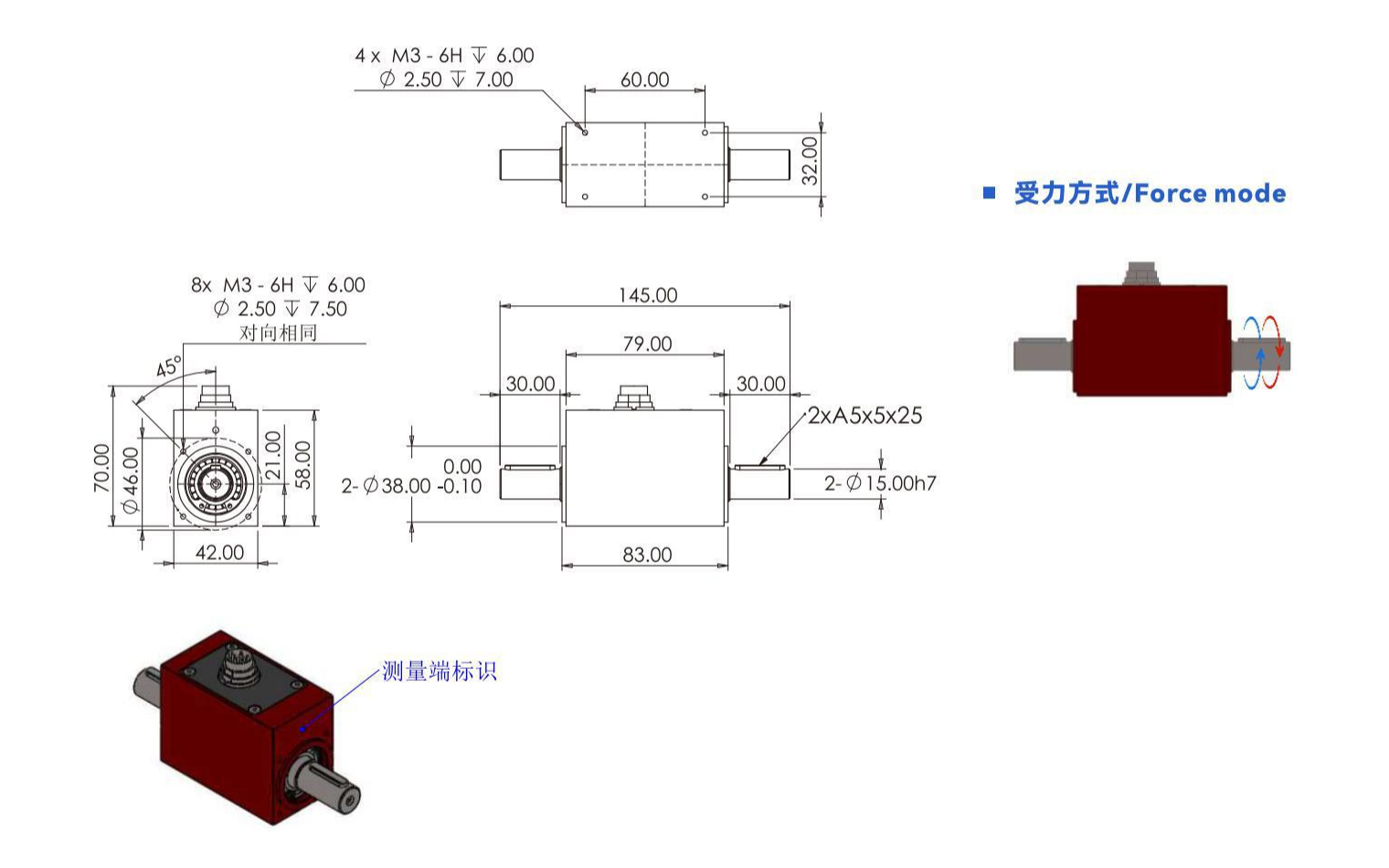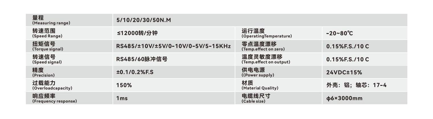 线圈电磁耦合,实现电源与测量信号无线传输,12芯一体注塑航空插头,集扭矩信号频率信号,模拟量信号,转速信号,RS485数字信号整体输出。进口轴承,寿命较长,极限转速较高,耐负荷较高,摩擦力更小。一体成型外壳,更高的硬度,更小的变形,采用车规级芯片精度性能更高、稳定性更可靠。