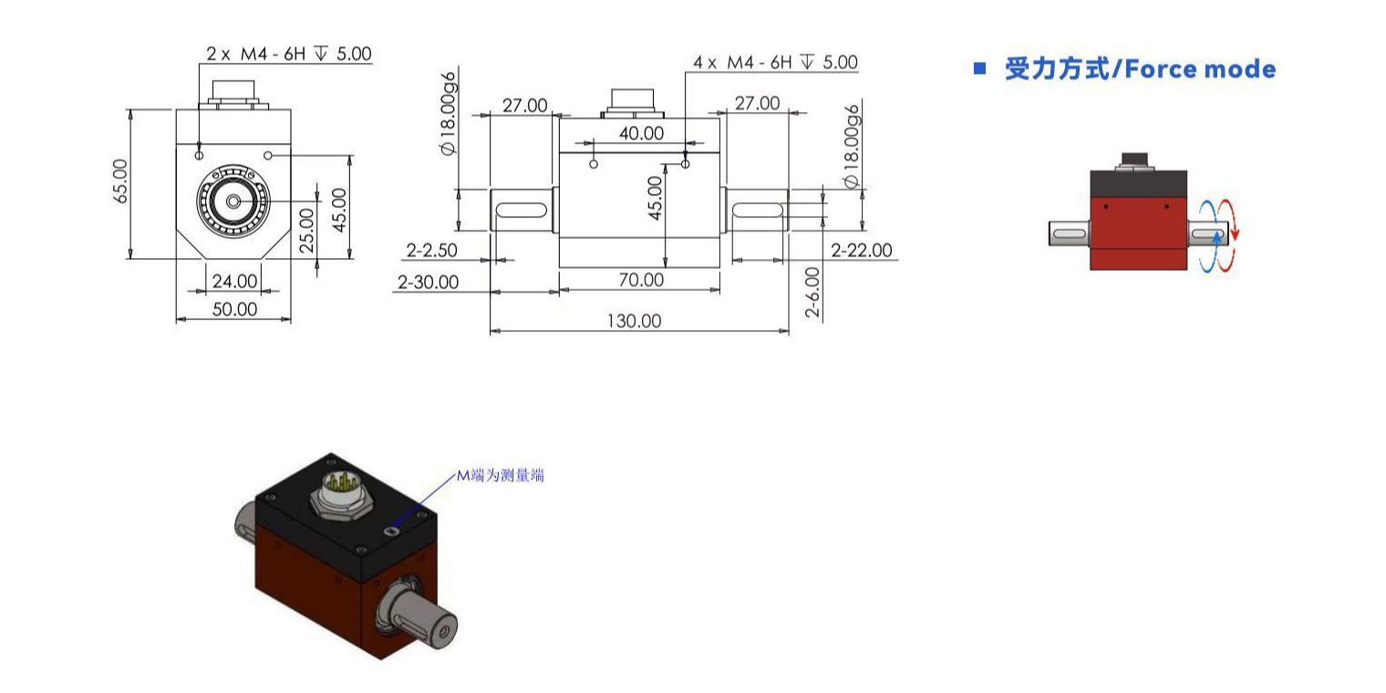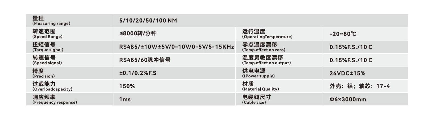 线圈电磁耦合,实现电源与测量信号无线传输,12芯一体注塑航空插头,集扭矩信号频率信号,模拟量信号,转速信号,RS485数字信号整体输出。进口轴承,寿命较长,极限转速较高,耐负荷较高,摩擦力更小。一体成型外壳,更高的硬度,体积小,采用车规级芯片精度性能更高、稳定性更可靠。