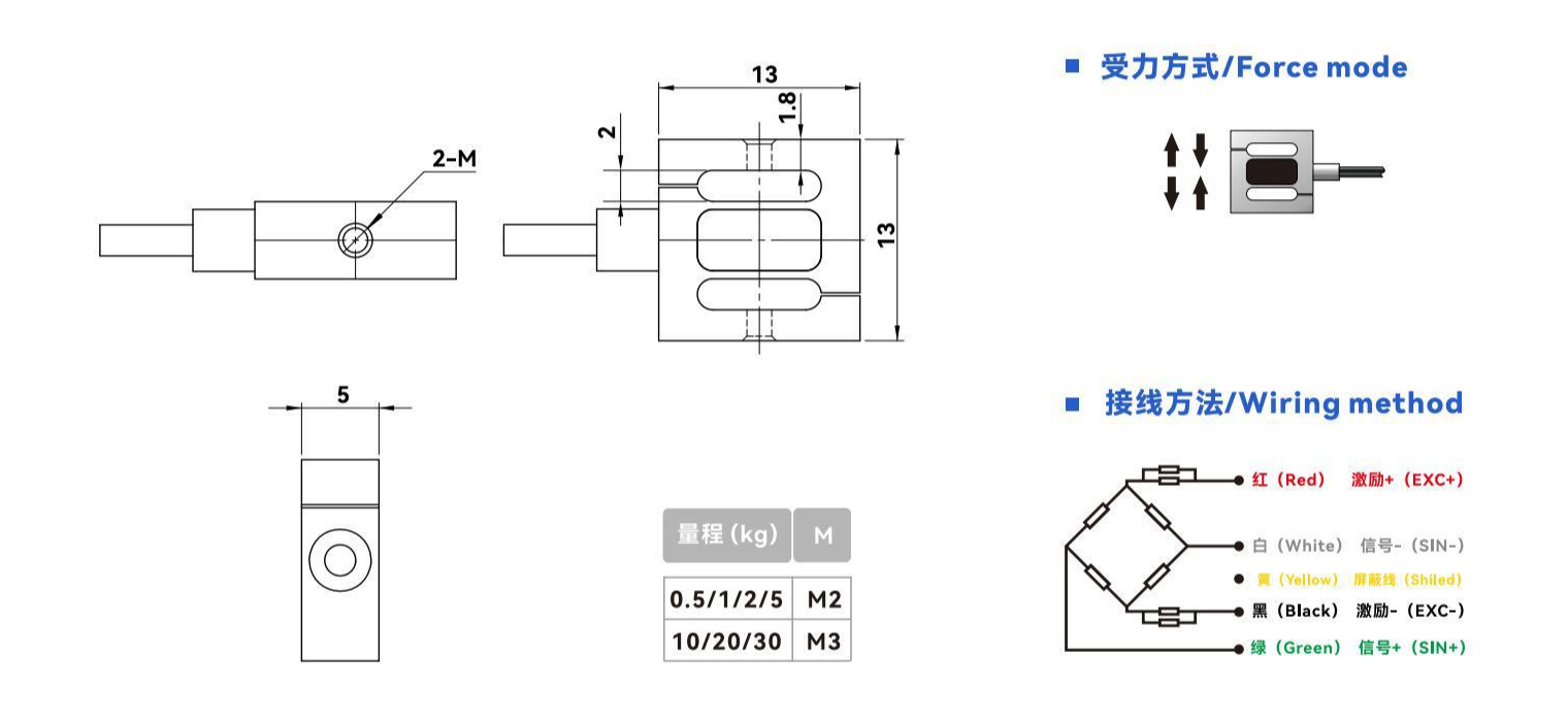 广泛应用于小空间拉力测试、张力测试等各种工业自动化设备。键盘手感按键测力等,测量精度优于土0.15% ,长期稳定性好,重复性可靠性高,采用不锈钢材质。