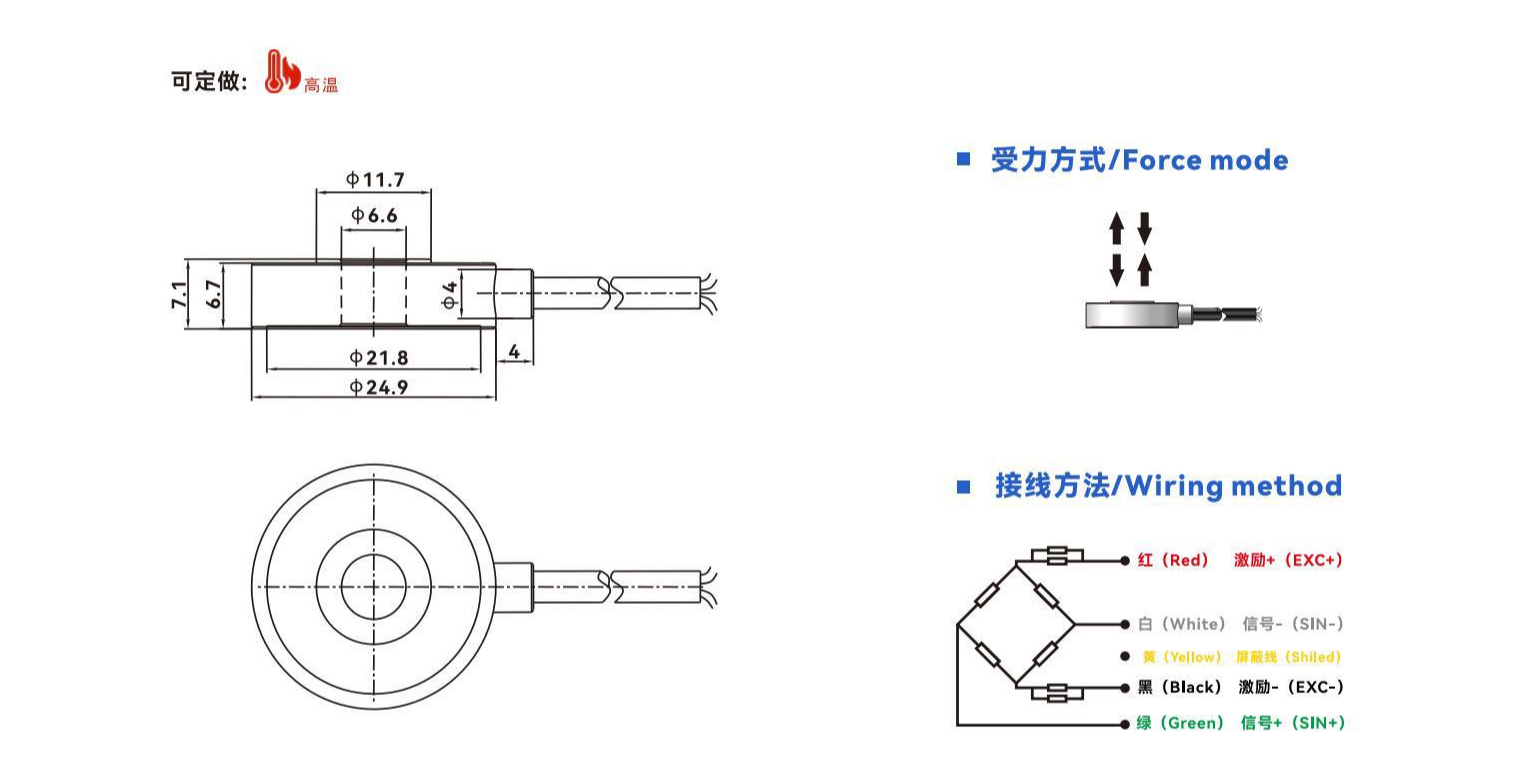 外形尺寸小,环形设计,不锈钢材质,动态响应频率高度低,,变形量小,高,适用于汽,压装,自动化组装,3C产品测试,新能源产品组装,医疗检测,机器人领域。