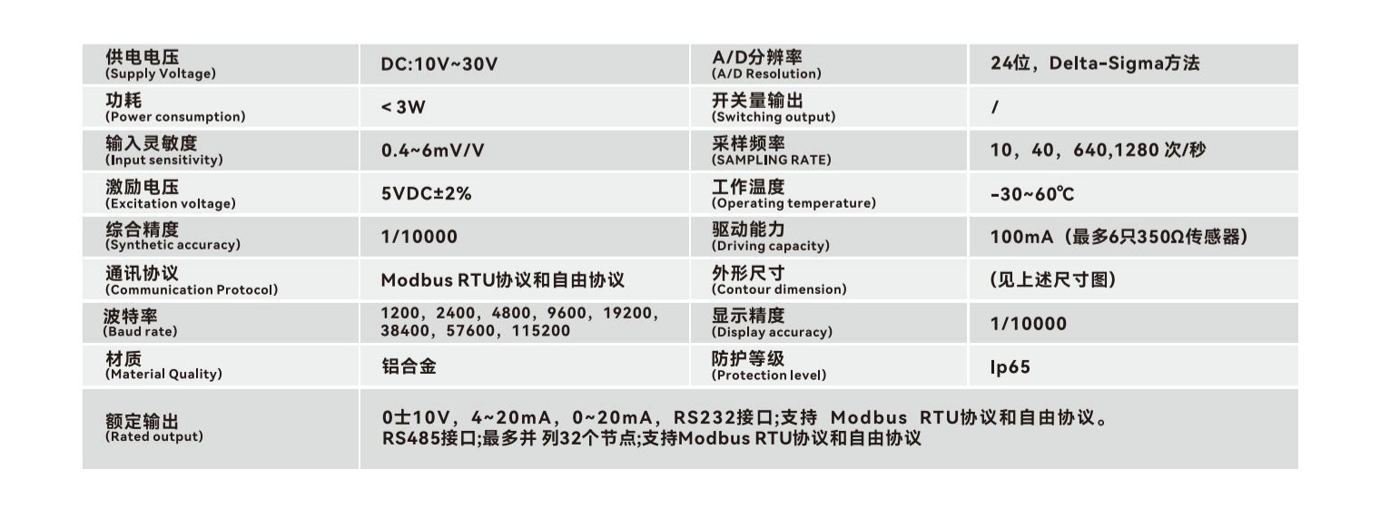 YG201变送器在同等价位的产品中,速度更快,可达1280次/秒。RS232接口;支持Modbus RTU协议和自由 协议。RS485接口;最多并列32个节点;支持Modbus RTU协议和自由协议。